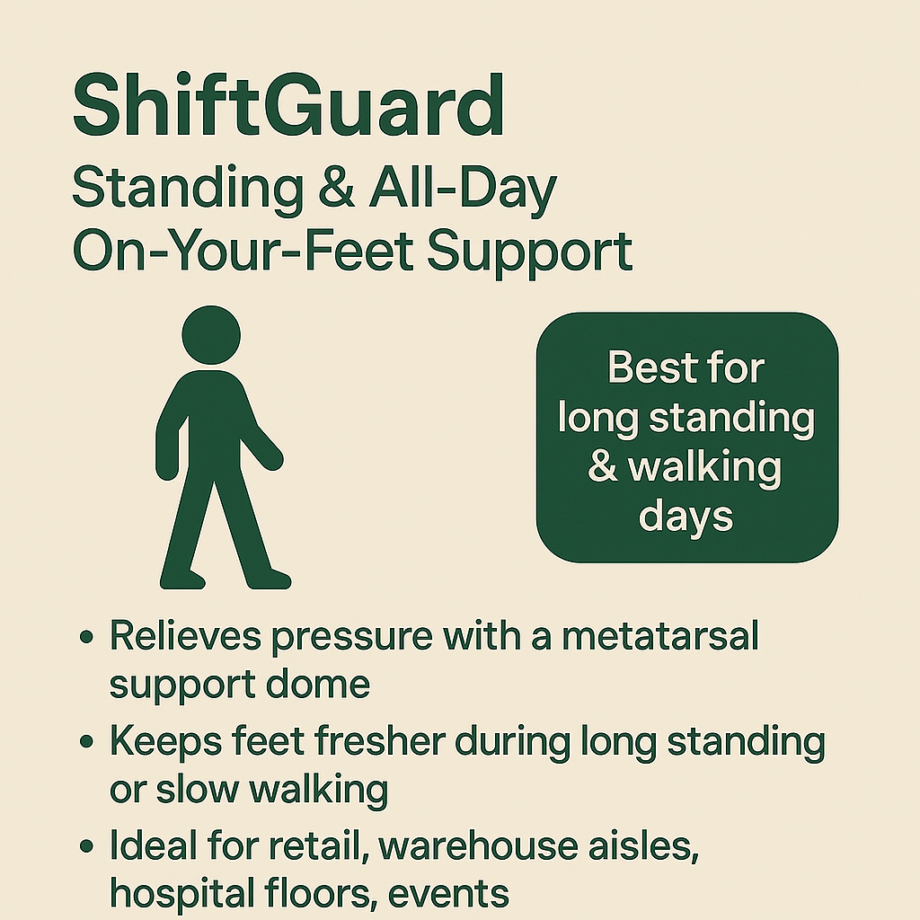 ShiftGuard is StepRelief’s standing insole — made for long days where you stay on your feet because the world still depends on you.
