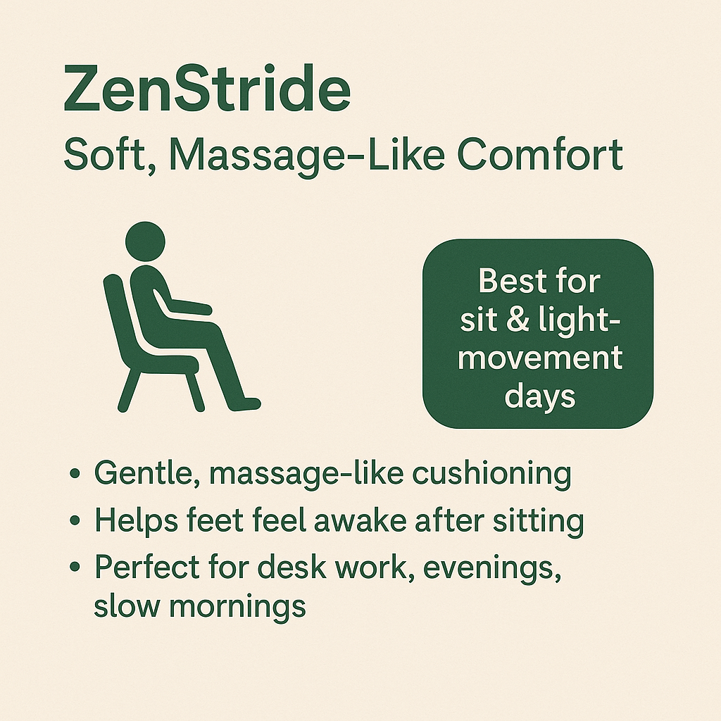 ZenStride keeps feet feeling alive and ready — perfect for the quiet, steady rhythm of everyday life.